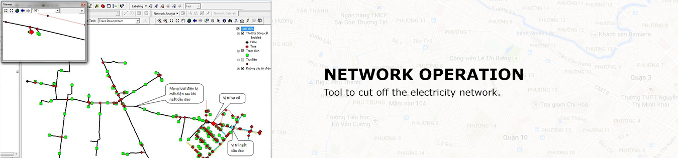Công cụ cho phép chọn để định nghĩa các đối tượng chính trong mạng lưới một cách linh hoạt để từ đó có thể thao tác việc đóng ngắt các cầu dao hay van của hệ thống...
